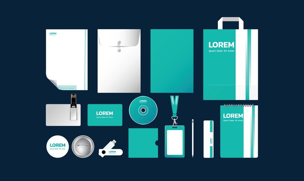 Phong bì thư, hóa đơn, chứng từ có logo và màu sắc đồng bộ.
